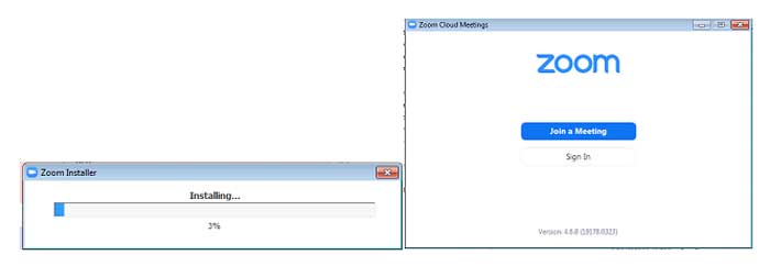 Luego ejecutará el instalador legítimo de Zoom y aparecerá una ventana emergente para solicitar al usuario la instalación del programa.