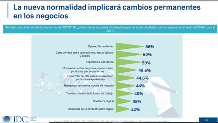 Debido al COVID- 19 el gasto que realizan las empresas ha reconfigurado la distribución de sus gastos en tecnología. Ahora el 45% de las organizaciones consideraron necesario mantener en funcionamiento las operaciones de TI existente.