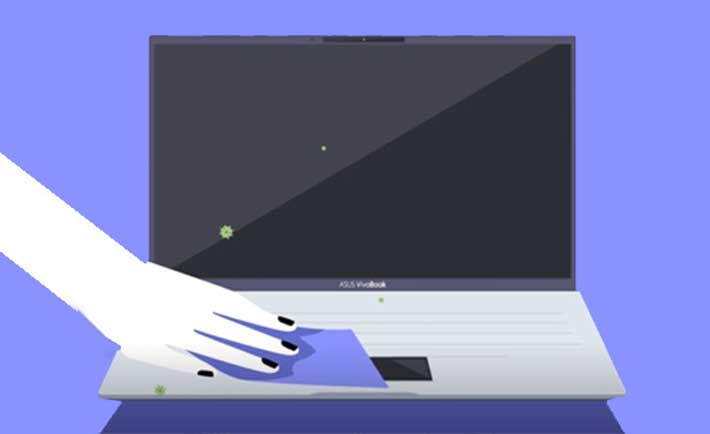 - Limpieza: Para evitar el contagio de cualquier tipo de enfermedad transmitida a partir del contacto con la PC, las medidas de higiene más simples son las más esenciales. Con la ayuda de un paño y alcohol isopropílico al 70%, limpia la pantalla y otros dispositivos que se conectan a la computadora. Los equipos periféricos (teclado y mouse) deben estar desconectados, y la computadora portátil o PC deben estar completamente apagadas, sin batería y desenchufada.