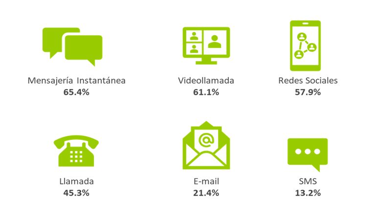Por ello, los usuarios se encargan de mantener la llama del amor, utilizando diferentes herramientas, principalmente mensajes por mensajería instantánea (65.4%) o redes sociales (57.9%), videollamadas (61.1%) o llamadas tradicionales (45.3%).