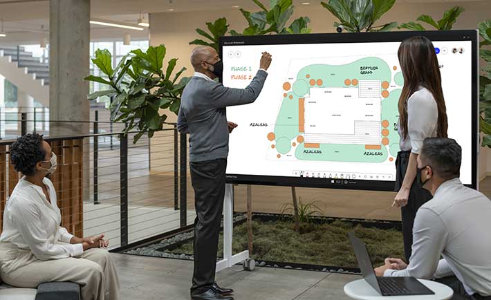 Por su parte, la Surface Hub 2S lanzada hace unos meses en versión de 50 pulgadas, obtiene un aumento en pantalla con 85 pulgadas. Se trata de un equipo pensado para las oficinas híbridas y colaborativas. No se trata solo de una pantalla extensión de PC, sino es una PC completa integrada de fabrica con el sistema operativo Windows 10 Team que permite su uso compartido mediante sesiones de usuario, permitiendo presentar proyectos de manera simplificada y segura. De ser requerido, se puede actualizar a Windows 10 Pro o Windows Enterprise, acorde a las necesidades de la empresa