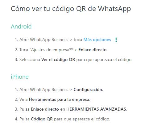 Inicio de chat con una empresa utilizando códigos QR