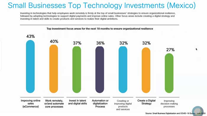 - El 36 por ciento de las pequeñas empresas están planeando invertir en soluciones que puedan ayudar a sus empleados a trabajar a distancia, así como el 33 por ciento invertirá en tecnologías digitales para mejorar las ventas en línea.