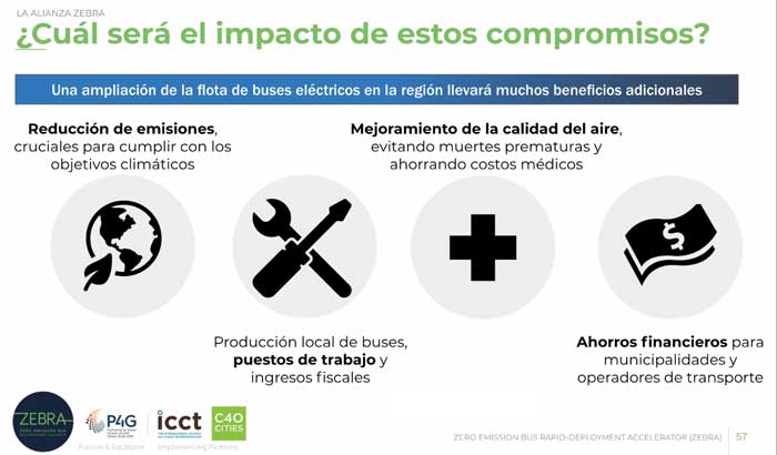 “A través de ZEBRA se ha logrado una adecuada oferta de tecnología, apalancando el compromiso cero emisión para apoyar planes de despliegue de más de 3,000 buses para 2022 y alcanzar un proyecto de inversión de más de mil millones de dólares para financiar este tipo de proyectos de e-buses en toda la región”, agregó Tomás Maltese.