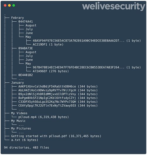 La segunda etapa de CloudMensis es un componente mucho más grande, empaquetado con múltiples funciones para recopilar información de la Mac comprometida. Desde ESET destacan que la intención de los atacantes es exfiltrar documentos, capturas de pantalla, archivos adjuntos de correo electrónico y otros datos confidenciales. CloudMensis utiliza el almacenamiento en la nube tanto para recibir comandos de sus operadores como para exfiltrar archivos. Admite tres proveedores diferentes: pCloud, Yandex Disk y Dropbox. La configuración incluida en la muestra analizada contiene tokens de autenticación para pCloud y Yandex Disk.